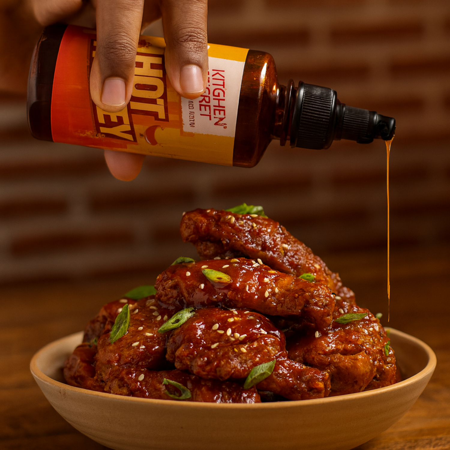 Experience an irresistible combination of sweet and spicy with Kitchen Secret's Hot Honey and Crispy Chilli Oil combo. Elevate your taste buds with the perfect harmony of heat and sweetness, creating a delightful flavor explosion for all your culinary delights.